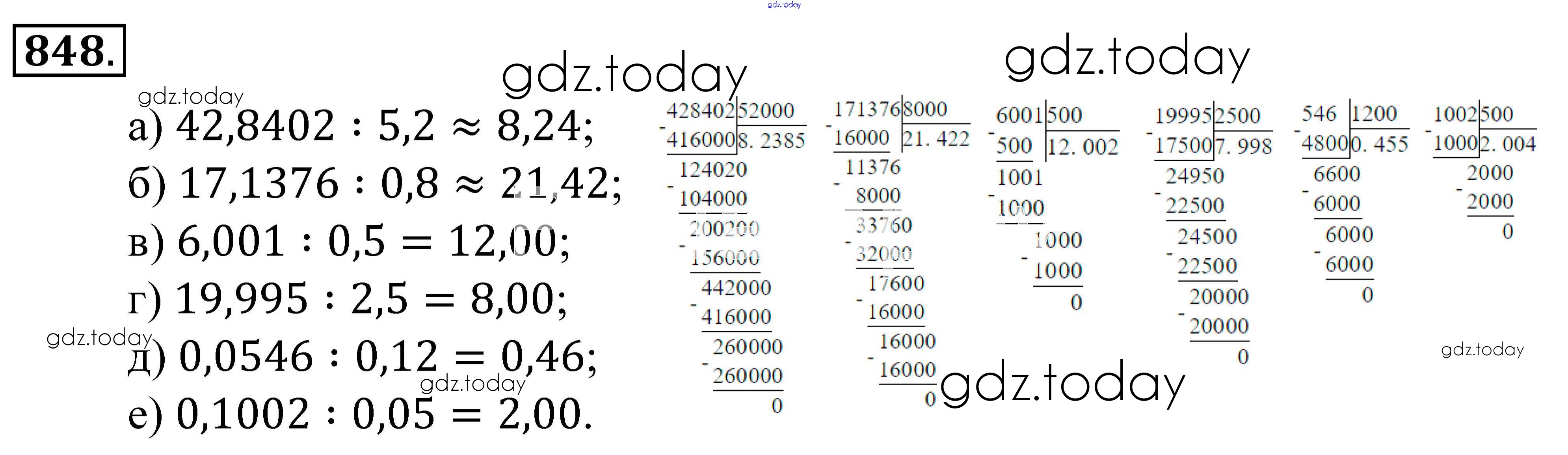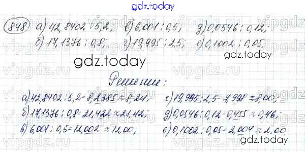 Ответы к Решение к упражнениям 848 Учебнику по Математике для 5 класса Зубарева, Мордкович Мнемозина 2015