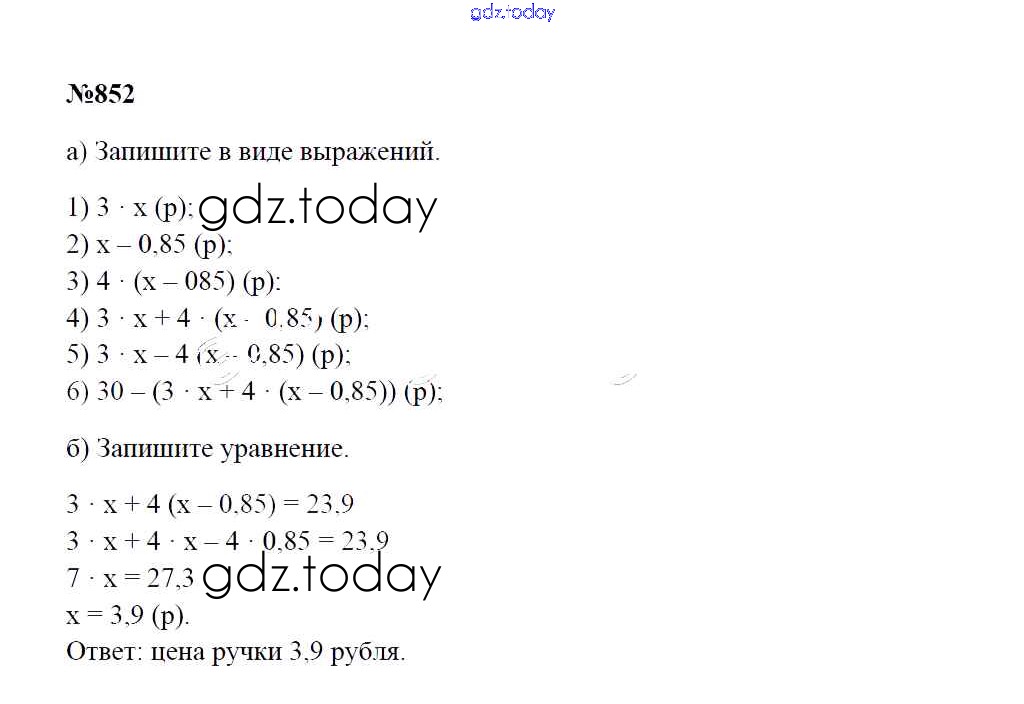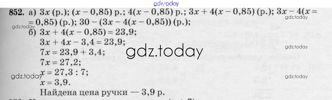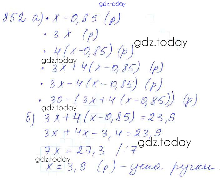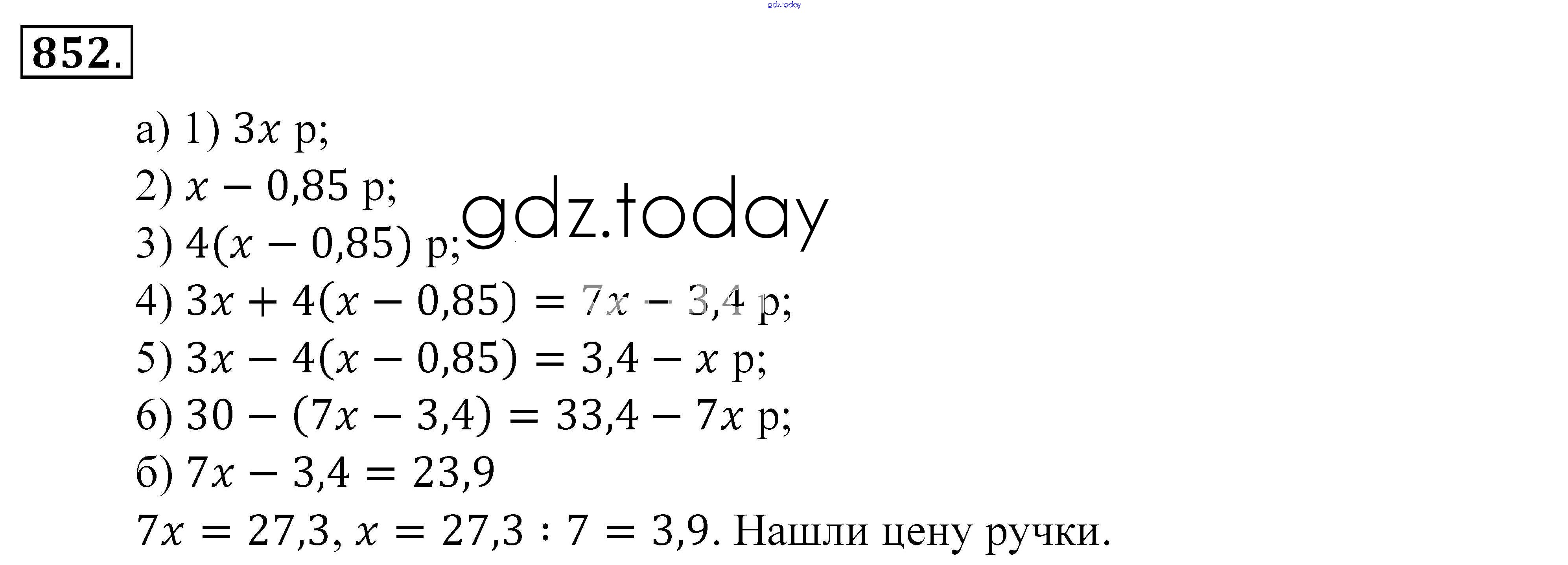 Ответы к Решение к упражнениям 852 Учебнику по Математике для 5 класса Зубарева, Мордкович Мнемозина 2015