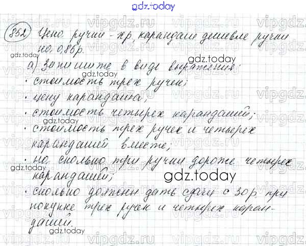 На страницах сайта gdz.today вы найдете учебный и вспомогательный материал, направленный на улучшения знаний школьной программы. ГДЗ - онлайн мир знаний Решение к упражнениям 852 Учебнику по Математике для 5 класса Зубарева, Мордкович Мнемозина 2015