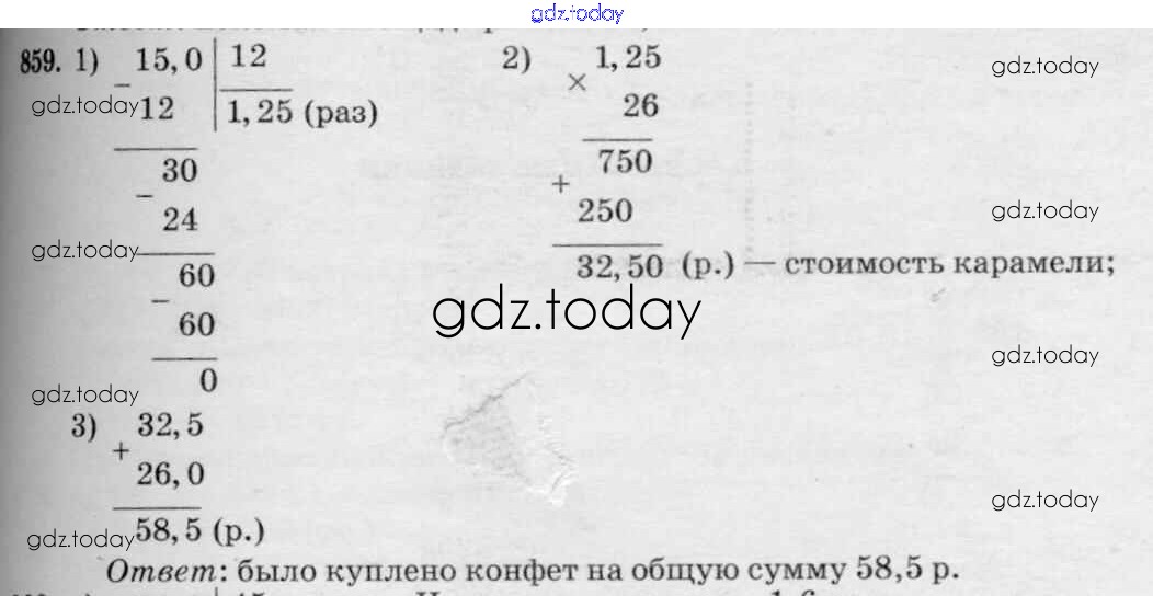 Ответы к Решение к упражнениям 859 Учебнику по Математике для 5 класса Зубарева, Мордкович Мнемозина 2015