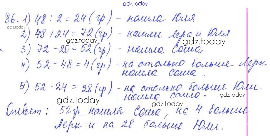 Ответы к Решение к упражнениям 86 Учебнику по Математике для 5 класса Зубарева, Мордкович Мнемозина 2015