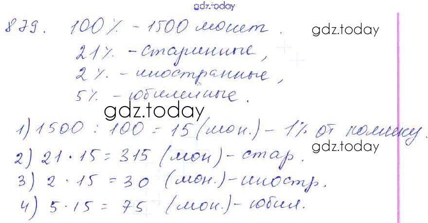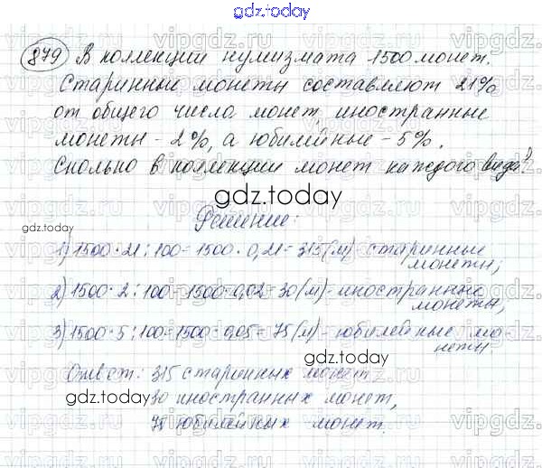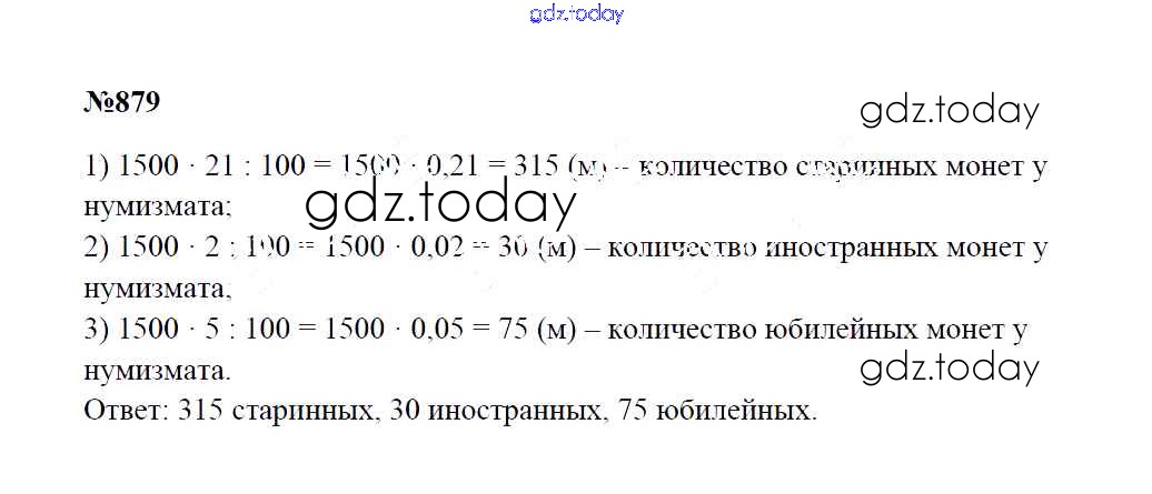 Ответы к Решение к упражнениям 879 Учебнику по Математике для 5 класса Зубарева, Мордкович Мнемозина 2015