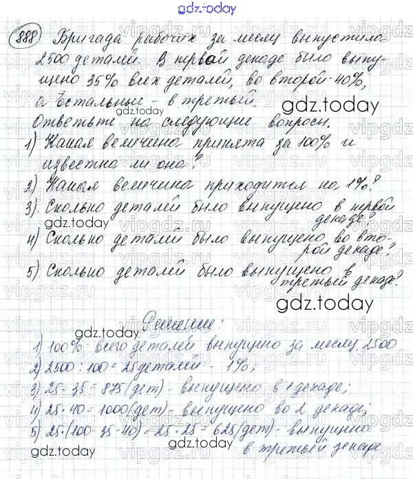 Ответы к Решение к упражнениям 888 Учебнику по Математике для 5 класса Зубарева, Мордкович Мнемозина 2015