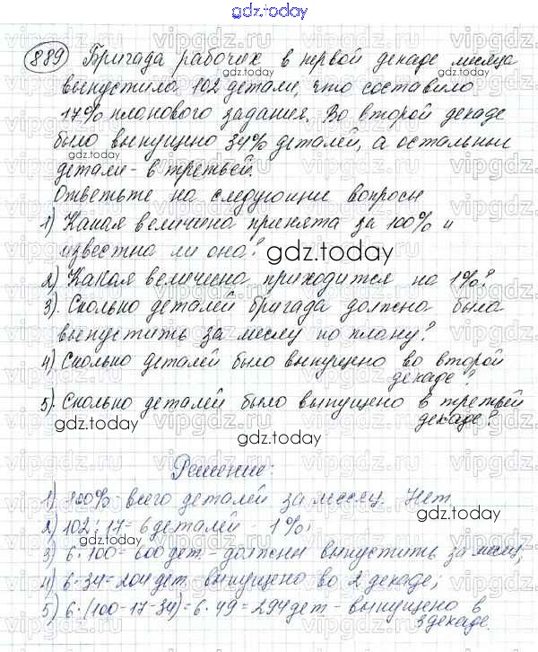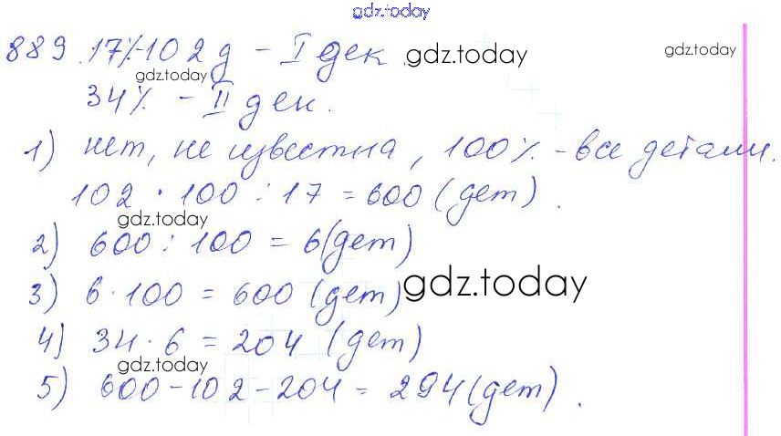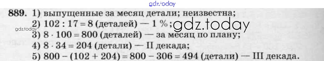 Ответы к Решение к упражнениям 889 Учебнику по Математике для 5 класса Зубарева, Мордкович Мнемозина 2015