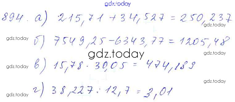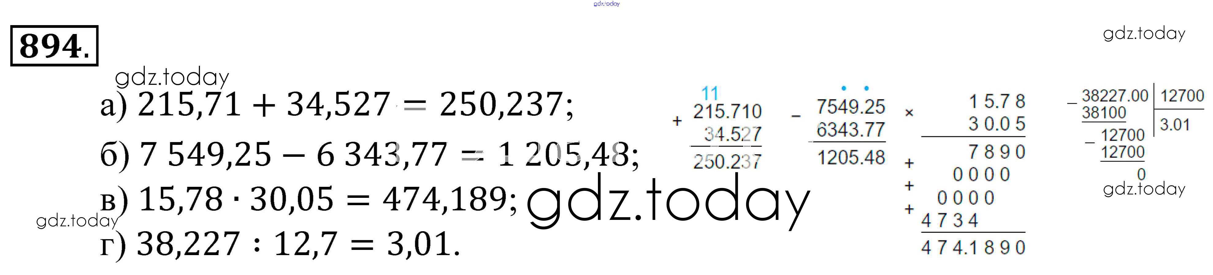 Ответы к Решение к упражнениям 894 Учебнику по Математике для 5 класса Зубарева, Мордкович Мнемозина 2015