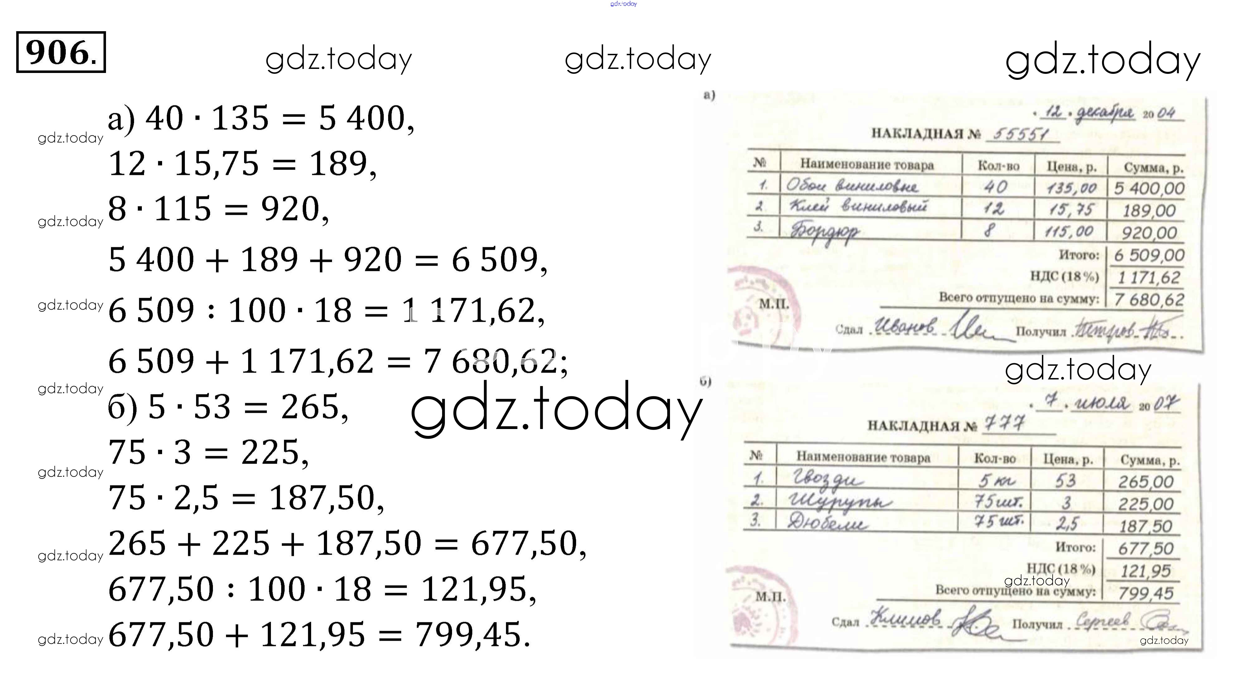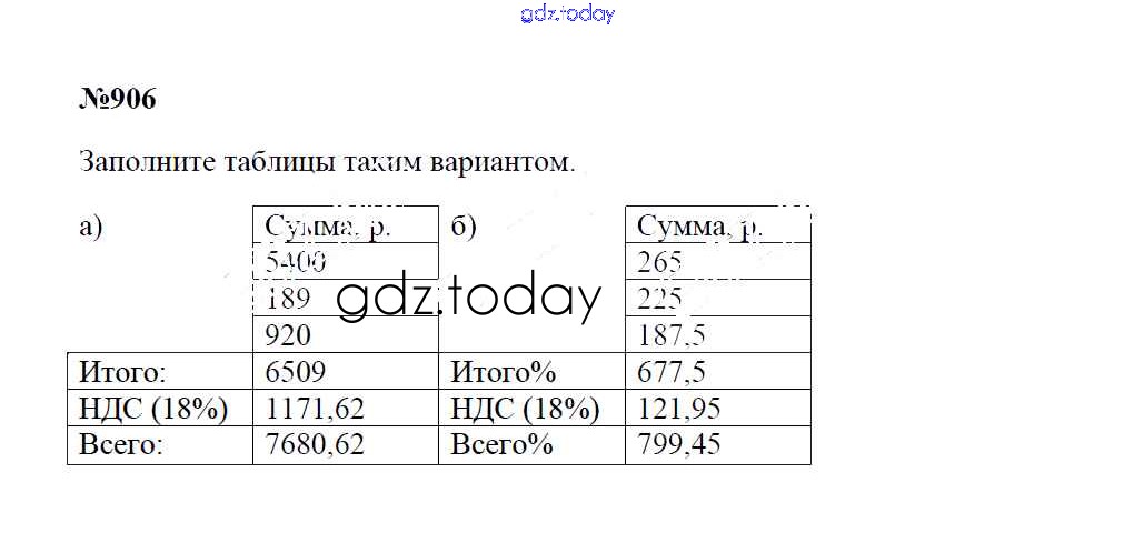 Ответы к Решение к упражнениям 906 Учебнику по Математике для 5 класса Зубарева, Мордкович Мнемозина 2015