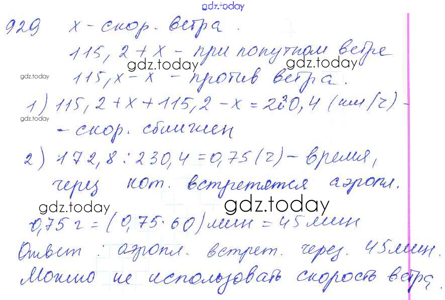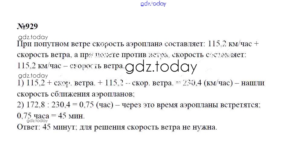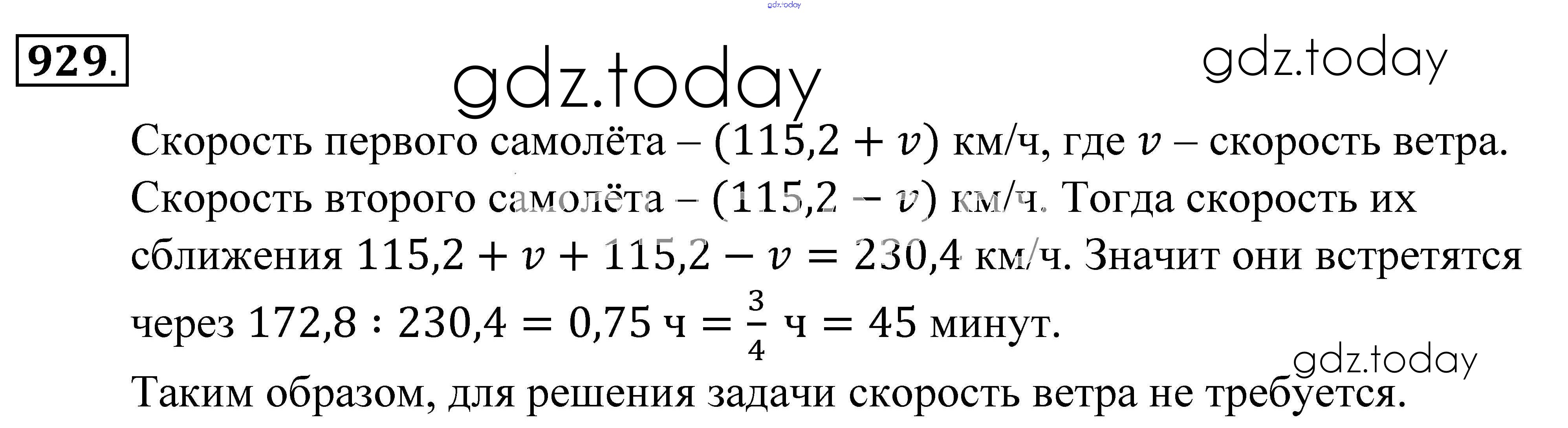 Ответы к Решение к упражнениям 929 Учебнику по Математике для 5 класса Зубарева, Мордкович Мнемозина 2015
