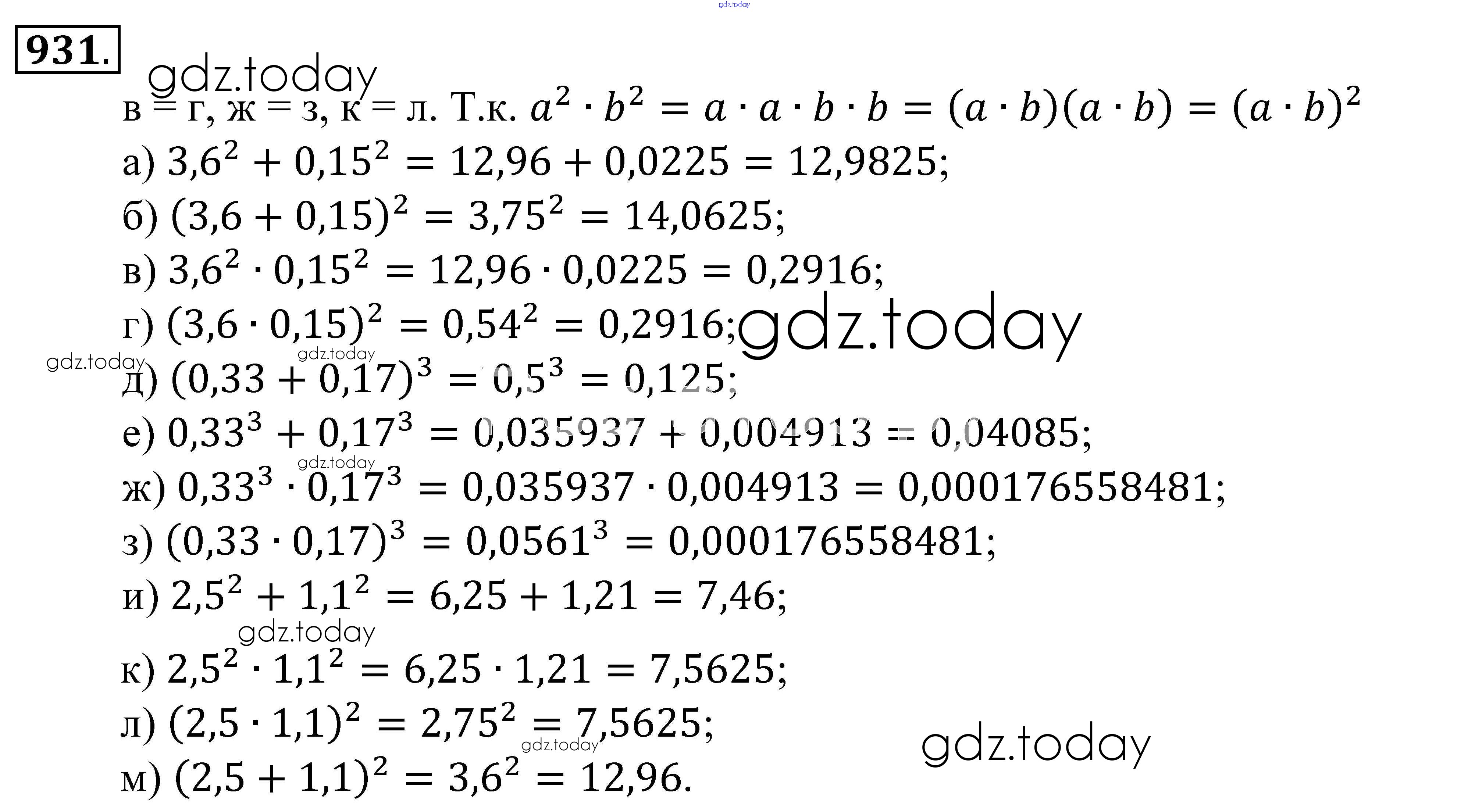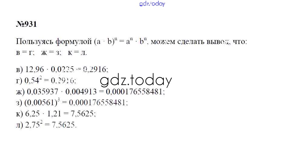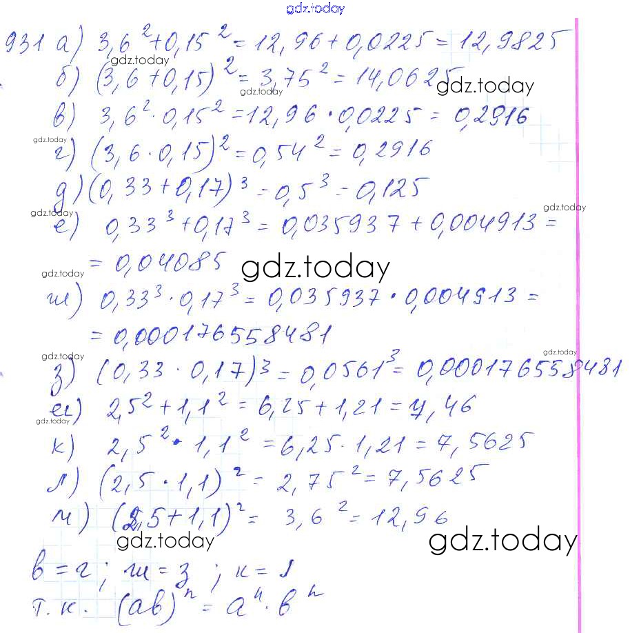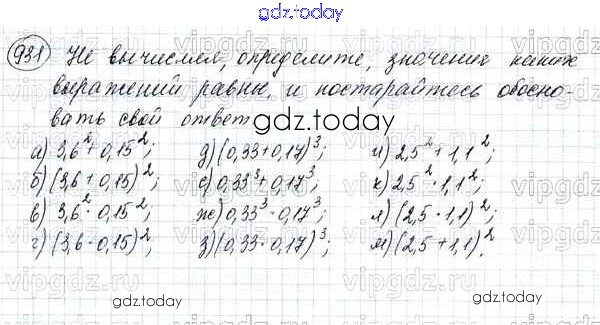 Ответы к Решение к упражнениям 931 Учебнику по Математике для 5 класса Зубарева, Мордкович Мнемозина 2015