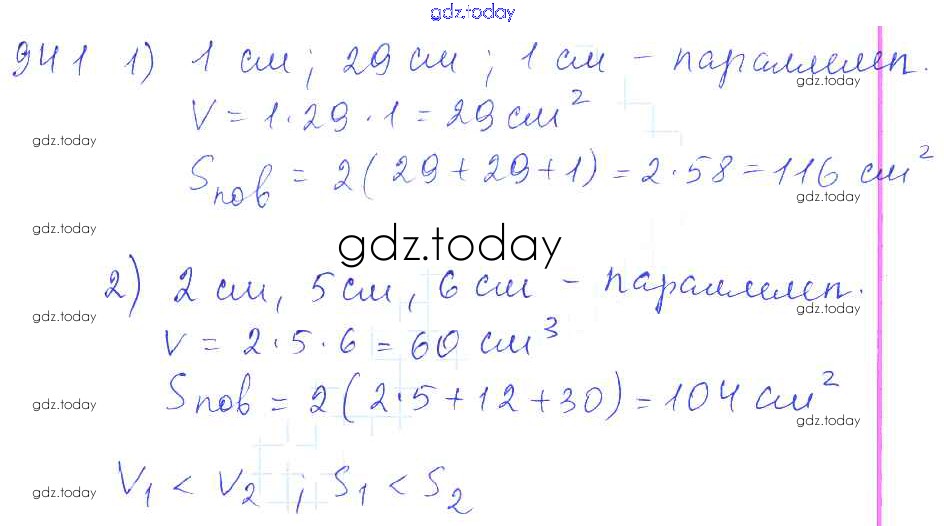 Ответы к Решение к упражнениям 941 Учебнику по Математике для 5 класса Зубарева, Мордкович Мнемозина 2015