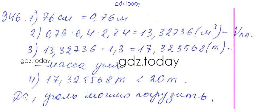 Ответы к Решение к упражнениям 946 Учебнику по Математике для 5 класса Зубарева, Мордкович Мнемозина 2015