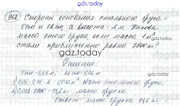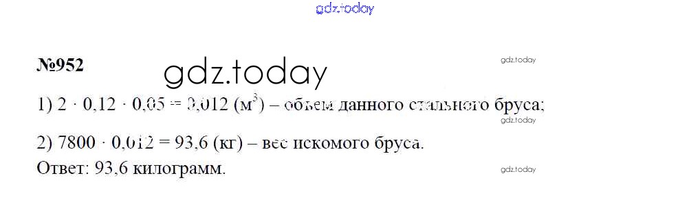 Ответы к Решение к упражнениям 952 Учебнику по Математике для 5 класса Зубарева, Мордкович Мнемозина 2015