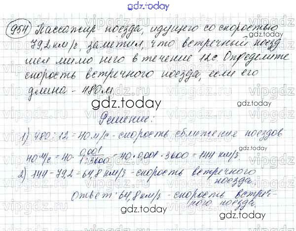 Ответы к Решение к упражнениям 954 Учебнику по Математике для 5 класса Зубарева, Мордкович Мнемозина 2015
