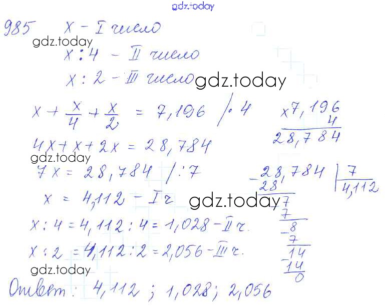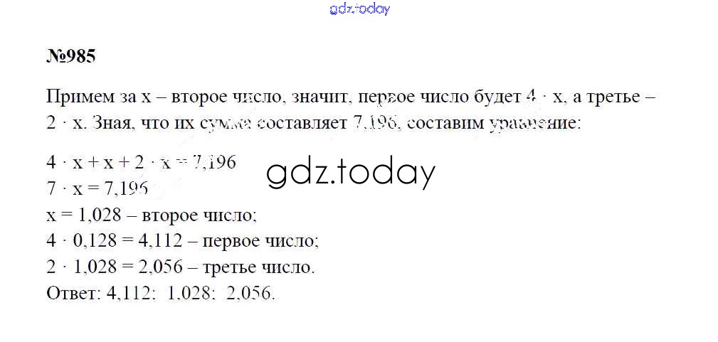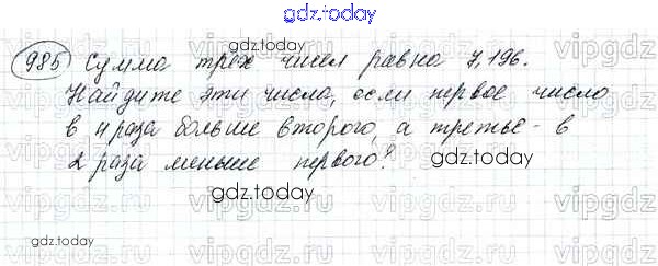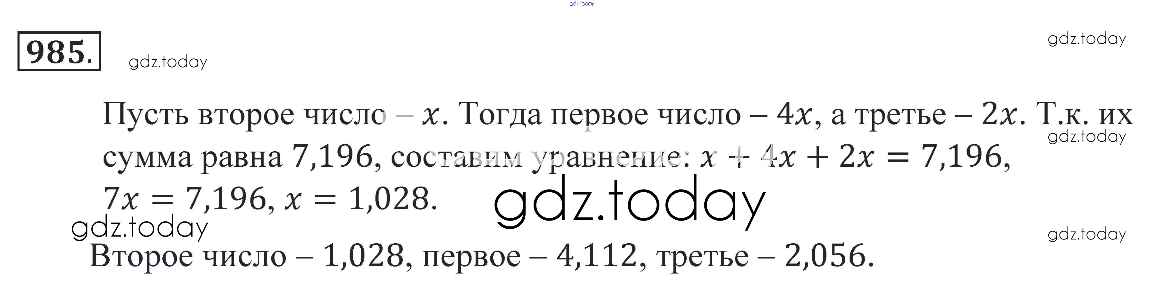 Ответы к Решение к упражнениям 985 Учебнику по Математике для 5 класса Зубарева, Мордкович Мнемозина 2015