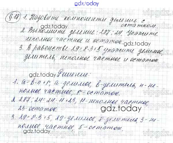 На страницах сайта gdz.today вы найдете учебный и вспомогательный материал, направленный на улучшения знаний школьной программы. ГДЗ - онлайн мир знаний Решение к контрольным вопросам и заданиям §18 Учебнику по Математике для 5 класса Зубарева, Мордкович Мнемозина 2015