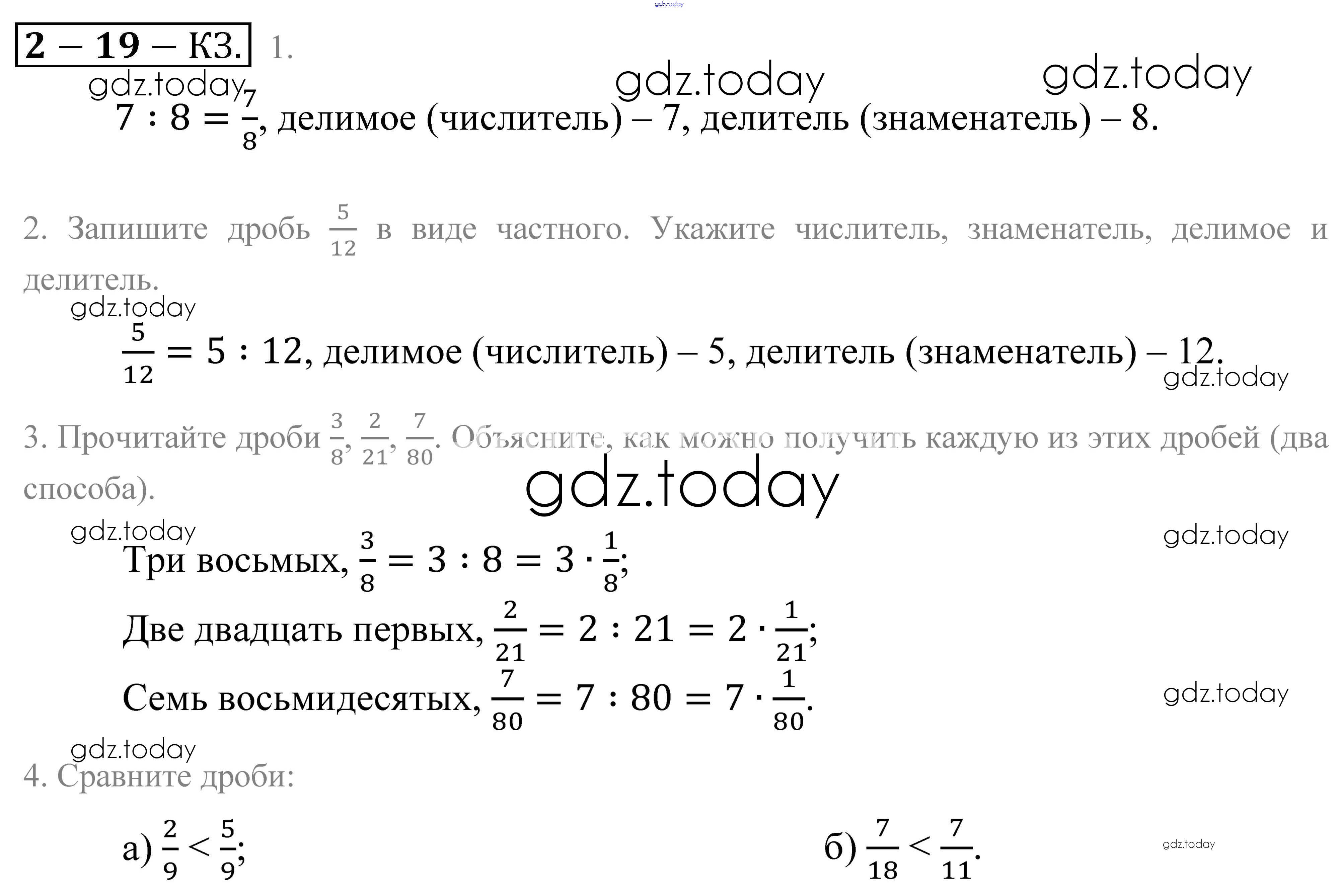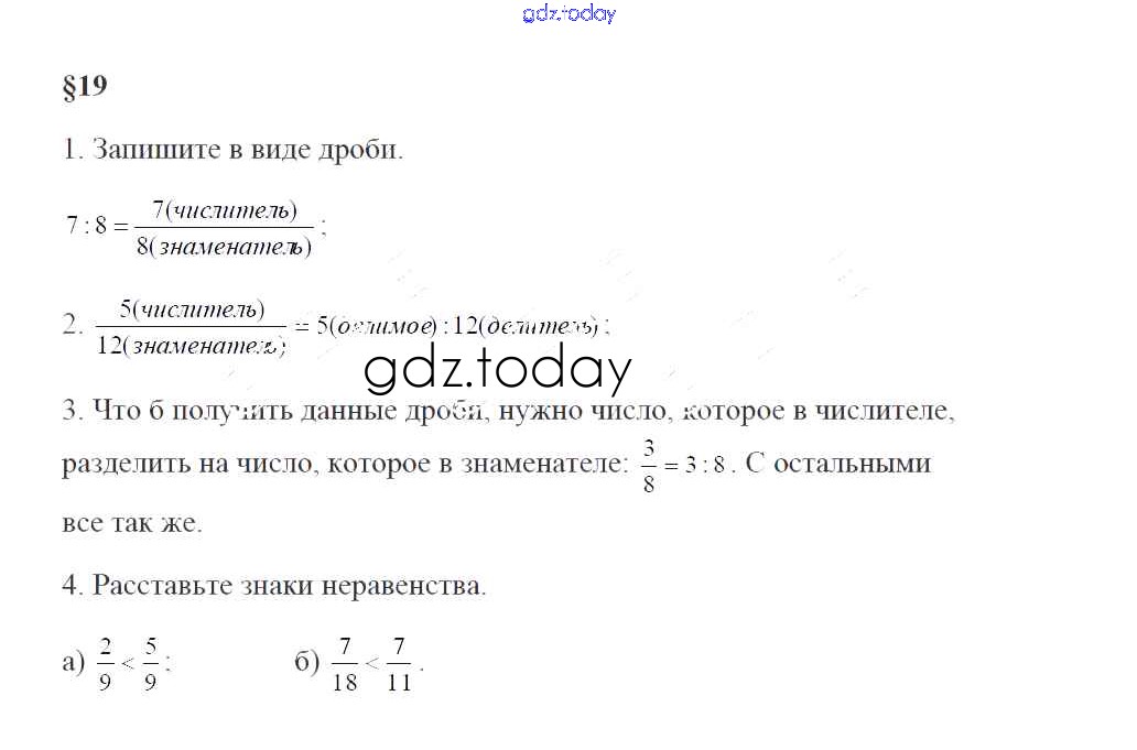 На страницах сайта gdz.today вы найдете учебный и вспомогательный материал, направленный на улучшения знаний школьной программы. ГДЗ - онлайн мир знаний Решение к контрольным вопросам и заданиям §19 Учебнику по Математике для 5 класса Зубарева, Мордкович Мнемозина 2015