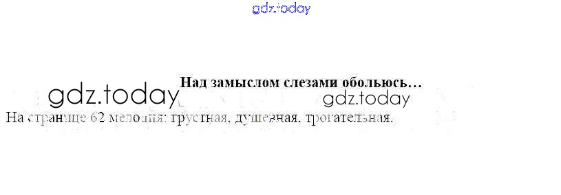 На страницах сайта gdz.today вы найдете учебный и вспомогательный материал, направленный на улучшения знаний школьной программы. ГДЗ - онлайн мир знаний Страницы (решение) 62 Творческой тетради по Музыке для 5 класса Сергеева, Критская Просвещение 2017