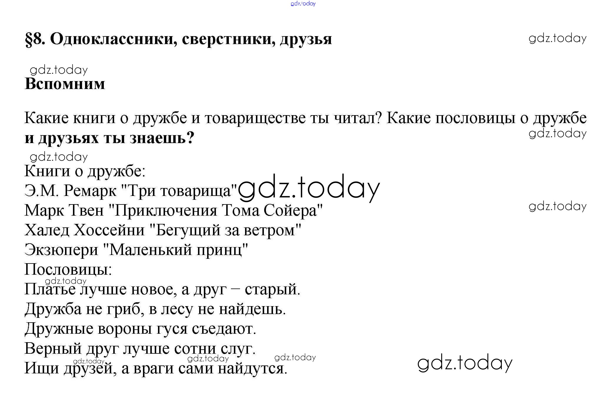 На страницах сайта gdz.today вы найдете учебный и вспомогательный материал, направленный на улучшения знаний школьной программы. ГДЗ - онлайн мир знаний Вспомним Решение к §8 1 Учебнику по Обществознанию для 5 класса Боголюбов, Виноградова Просвещение 2013