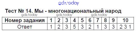 На страницах сайта gdz.today вы найдете учебный и вспомогательный материал, направленный на улучшения знаний школьной программы. ГДЗ - онлайн мир знаний Решение к тестам Тест №14. Мы - многонациональный народ Тестам по Обществознанию для 5 класса Лебедева Экзамен УМК 2016
