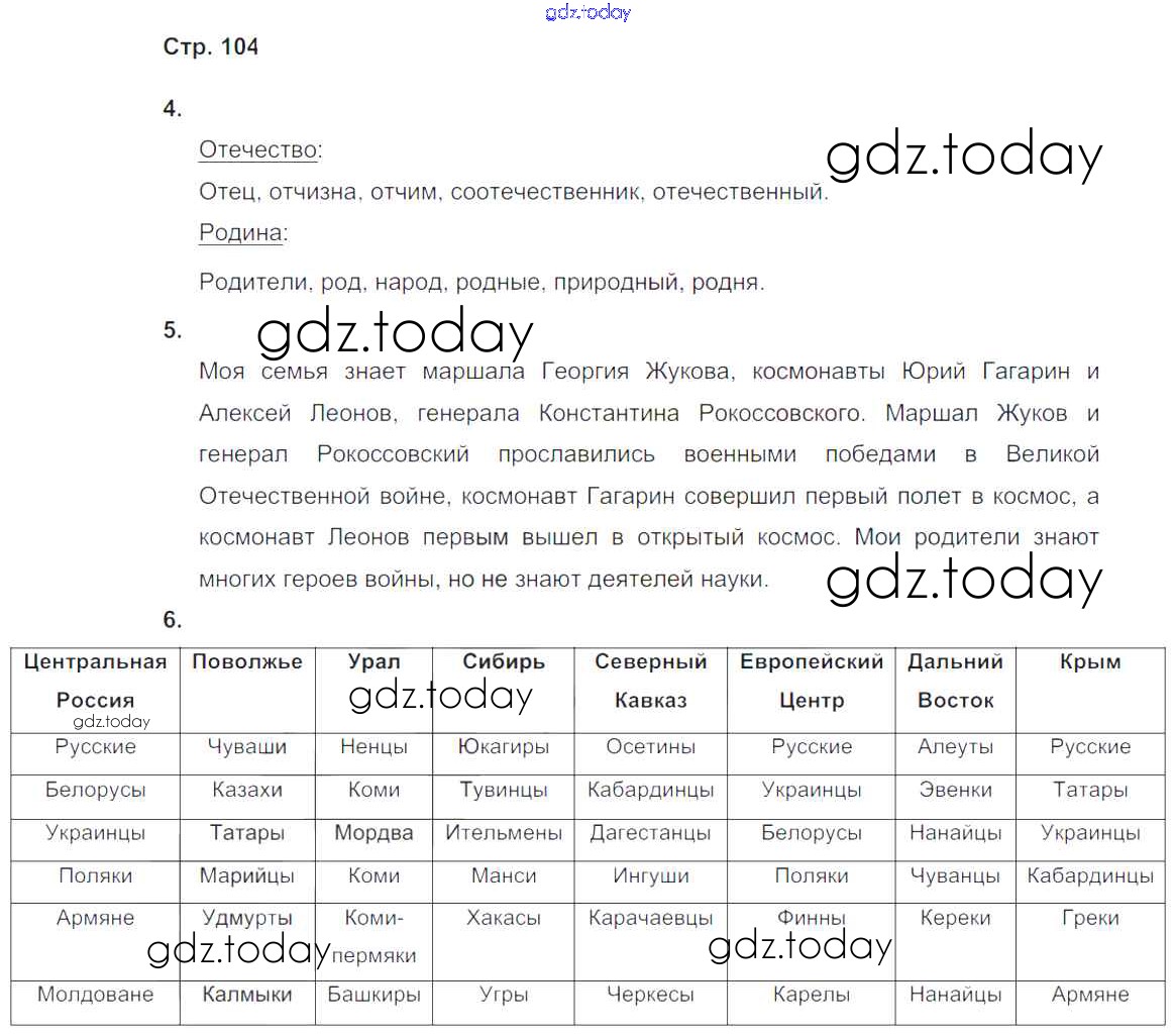 Ответы к Решение к теме 3. Наша Родина - Россия - Российская Федерация стр. 104 Рабочей тетради по Обществознанию для 5 класса Болотина, Мишина Дрофа Вертикаль 2019