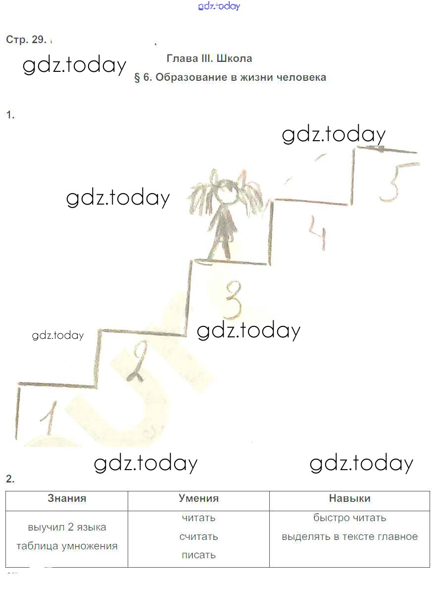 На страницах сайта gdz.today вы найдете учебный и вспомогательный материал, направленный на улучшения знаний школьной программы. ГДЗ - онлайн мир знаний Страницы (решение) 29 Рабочей тетради по Обществознанию для 5 класса Иванова, Хотеенкова Просвещение 2018