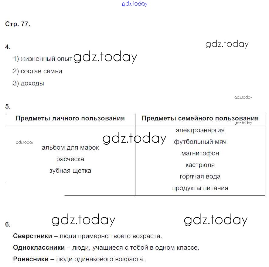 На страницах сайта gdz.today вы найдете учебный и вспомогательный материал, направленный на улучшения знаний школьной программы. ГДЗ - онлайн мир знаний Страницы (решение) 77 Рабочей тетради по Обществознанию для 5 класса Иванова, Хотеенкова Просвещение 2018