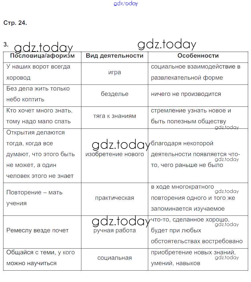 На страницах сайта gdz.today вы найдете учебный и вспомогательный материал, направленный на улучшения знаний школьной программы. ГДЗ - онлайн мир знаний Страницы (решение) 24 Рабочей тетради по Обществознанию для 5 класса Хромова Русское слово Инновационная школа 2016
