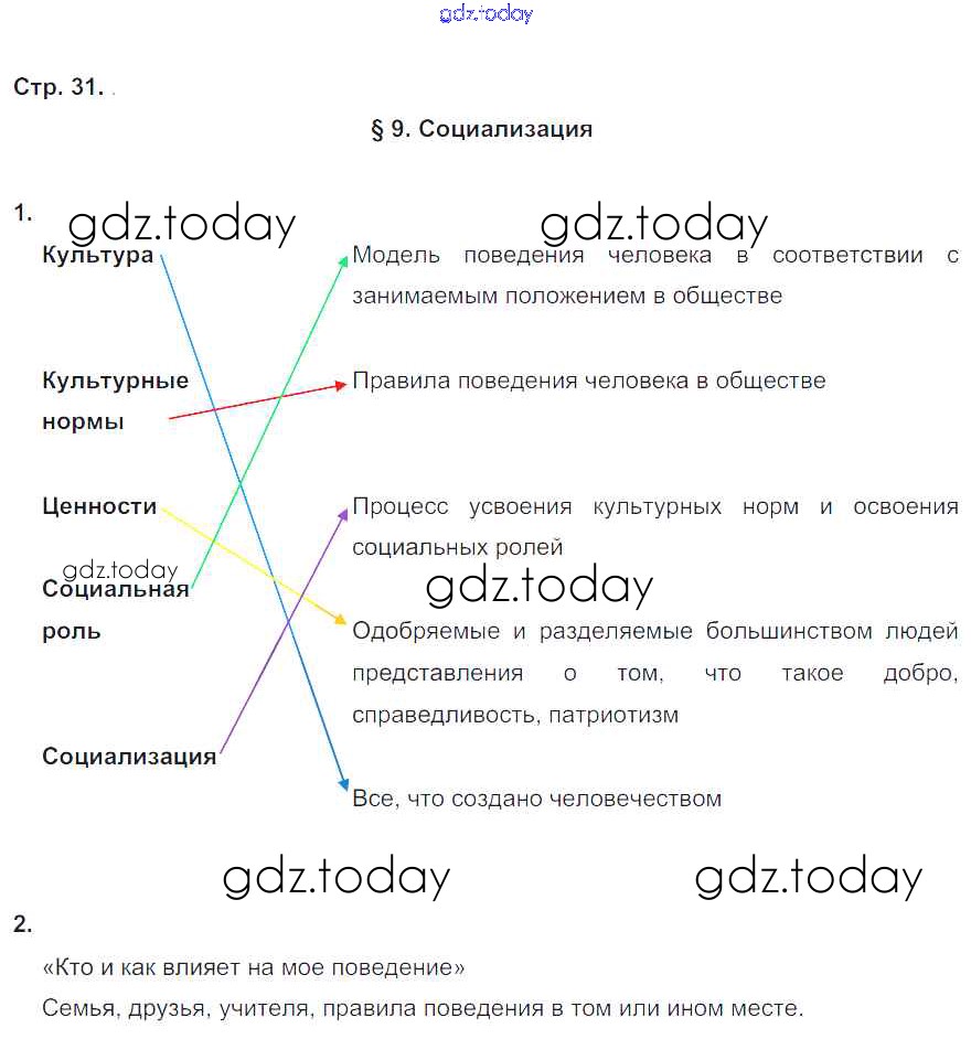На страницах сайта gdz.today вы найдете учебный и вспомогательный материал, направленный на улучшения знаний школьной программы. ГДЗ - онлайн мир знаний Страницы (решение) 31 Рабочей тетради по Обществознанию для 5 класса Хромова Русское слово Инновационная школа 2016