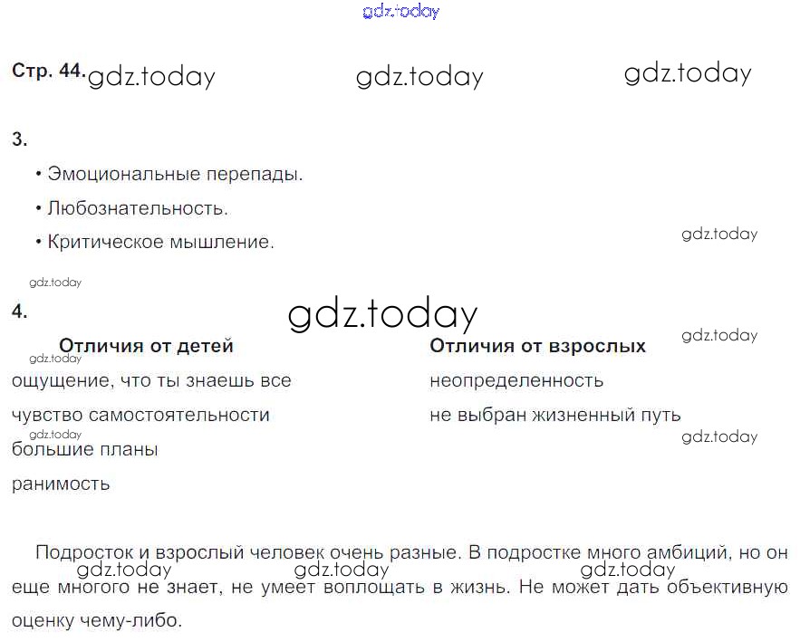На страницах сайта gdz.today вы найдете учебный и вспомогательный материал, направленный на улучшения знаний школьной программы. ГДЗ - онлайн мир знаний Страницы (решение) 44 Рабочей тетради по Обществознанию для 5 класса Хромова Русское слово Инновационная школа 2016