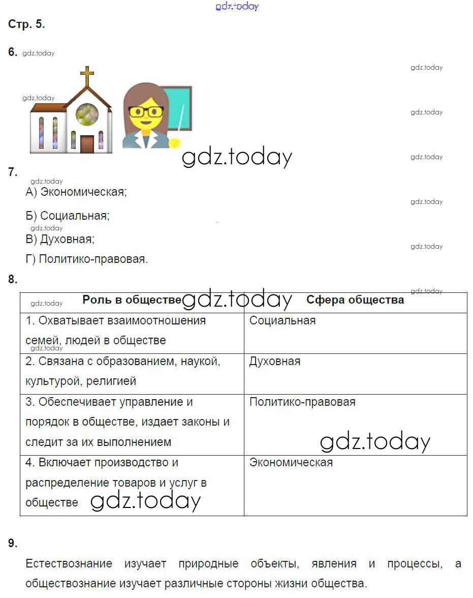 На страницах сайта gdz.today вы найдете учебный и вспомогательный материал, направленный на улучшения знаний школьной программы. ГДЗ - онлайн мир знаний Страницы (решение) 5 Рабочей тетради по Обществознанию для 5 класса Соболева, Трухина Вентана-граф УМК 2018