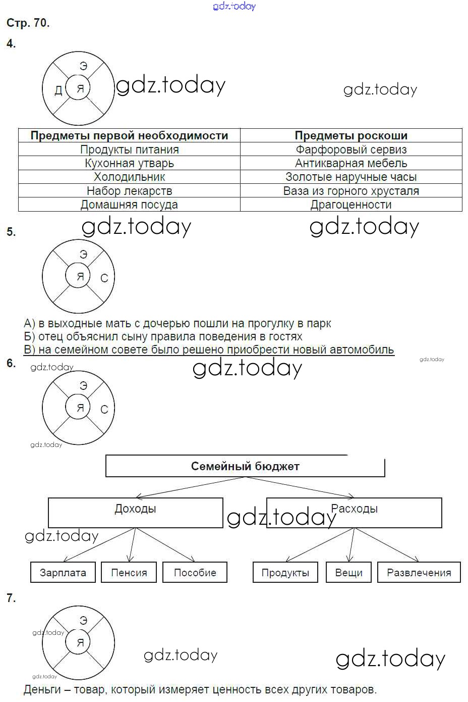 Ответы к Страницы (решение) 70 Рабочей тетради по Обществознанию для 5 класса Соболева, Трухина Вентана-граф УМК 2018