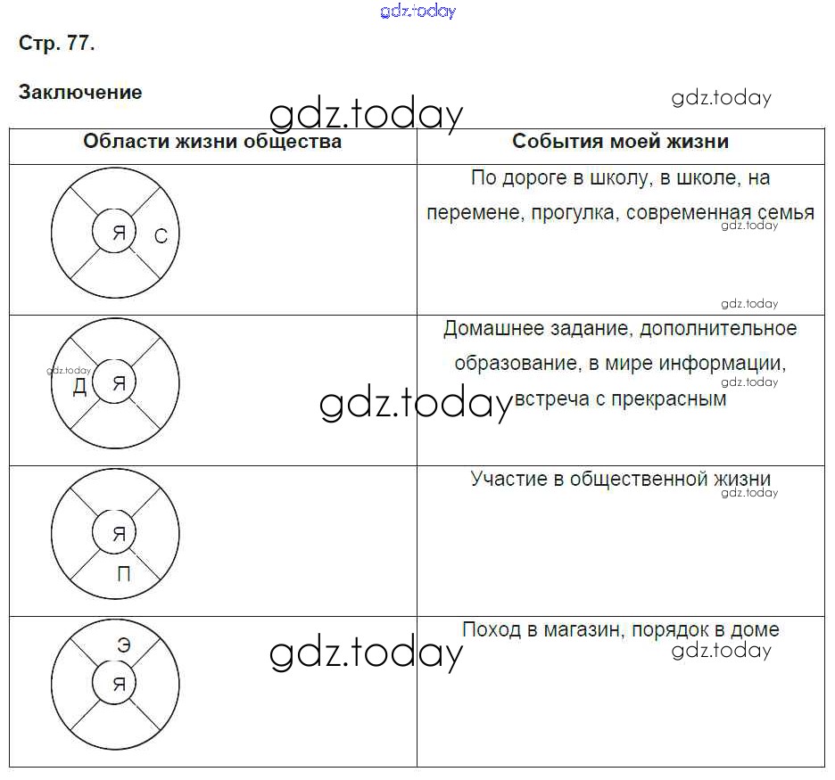 На страницах сайта gdz.today вы найдете учебный и вспомогательный материал, направленный на улучшения знаний школьной программы. ГДЗ - онлайн мир знаний Страницы (решение) 77 Рабочей тетради по Обществознанию для 5 класса Соболева, Трухина Вентана-граф УМК 2018