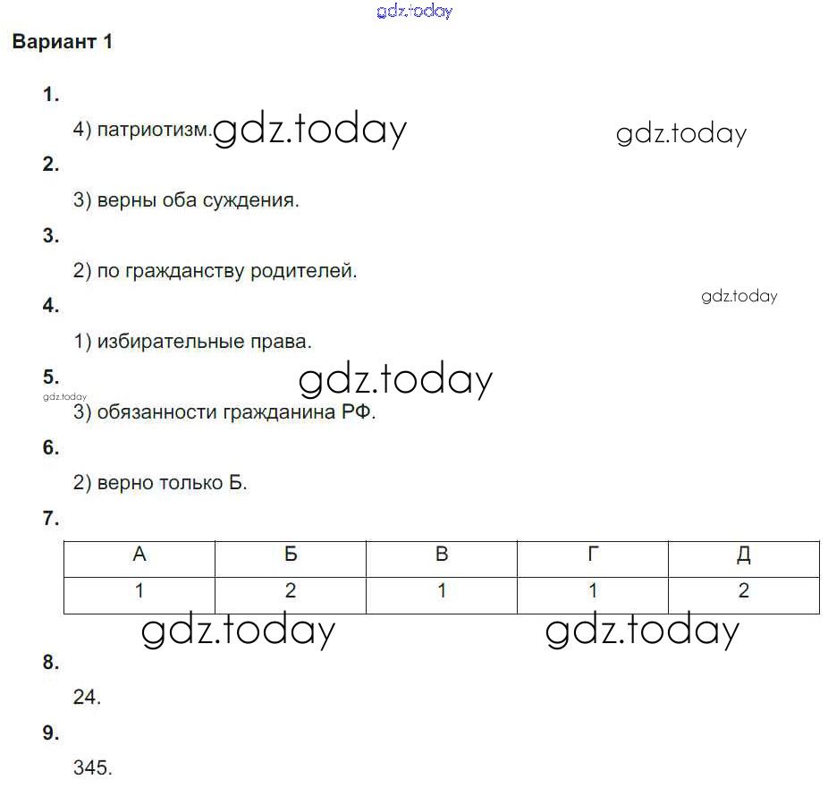 На страницах сайта gdz.today вы найдете учебный и вспомогательный материал, направленный на улучшения знаний школьной программы. ГДЗ - онлайн мир знаний Тема "Родина" Решение к самостоятельным работам вариант-1 Тематическому контролю по Обществознанию для 5-6 класса Лобанов Национальное образование 2017