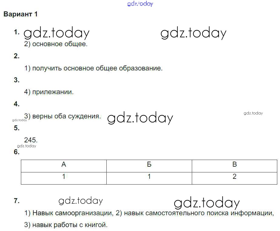 Ответы к СР №2 Тема "Семья. Труд. Школа" вариант-1 Тематическому контролю по Обществознанию для 5-6 класса Лобанов Национальное образование 2017