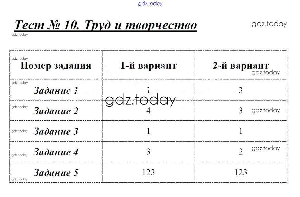 На страницах сайта gdz.today вы найдете учебный и вспомогательный материал, направленный на улучшения знаний школьной программы. ГДЗ - онлайн мир знаний Решение к тестам Тест-10. Труд и творчество Контрольно-измерительным материалам (КИМ) по Обществознанию для 5 класса Волкова ВАКО 2017