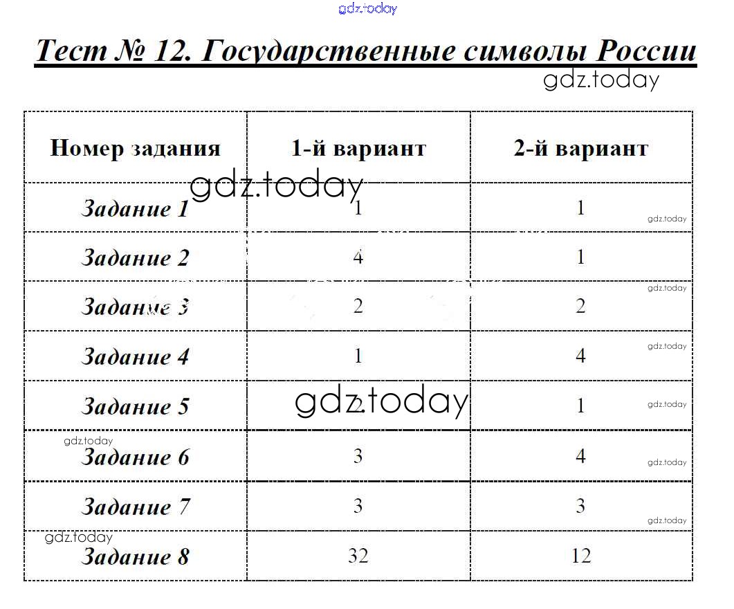 На страницах сайта gdz.today вы найдете учебный и вспомогательный материал, направленный на улучшения знаний школьной программы. ГДЗ - онлайн мир знаний Решение к тестам Тест-12. Государственные символы России Контрольно-измерительным материалам (КИМ) по Обществознанию для 5 класса Волкова ВАКО 2017