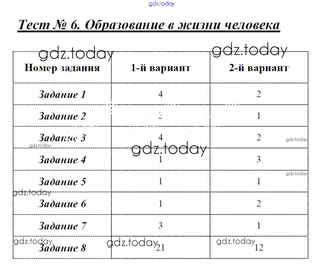 На страницах сайта gdz.today вы найдете учебный и вспомогательный материал, направленный на улучшения знаний школьной программы. ГДЗ - онлайн мир знаний Решение к тестам Тест-6. Образование в жизни человека Контрольно-измерительным материалам (КИМ) по Обществознанию для 5 класса Волкова ВАКО 2017