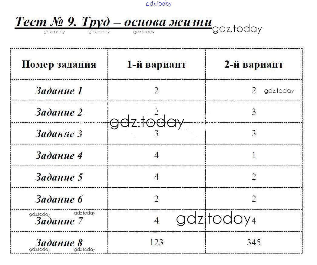 На страницах сайта gdz.today вы найдете учебный и вспомогательный материал, направленный на улучшения знаний школьной программы. ГДЗ - онлайн мир знаний Решение к тестам Тест-9. Труд - основа жизни Контрольно-измерительным материалам (КИМ) по Обществознанию для 5 класса Волкова ВАКО 2017