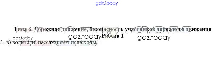 На страницах сайта gdz.today вы найдете учебный и вспомогательный материал, направленный на улучшения знаний школьной программы. ГДЗ - онлайн мир знаний Работа 1 Решение к теме 6. Дорожное движение, безопасность участников дорожного движения 1 Рабочей тетради по ОБЖ для 5 класса Демидов Лицей 2016