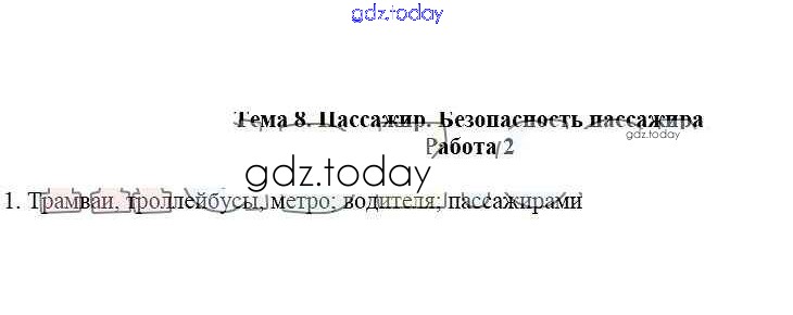 На страницах сайта gdz.today вы найдете учебный и вспомогательный материал, направленный на улучшения знаний школьной программы. ГДЗ - онлайн мир знаний Работа 2 Решение к теме 8. Пассажир. Безопасность пассажира 1 Рабочей тетради по ОБЖ для 5 класса Демидов Лицей 2016