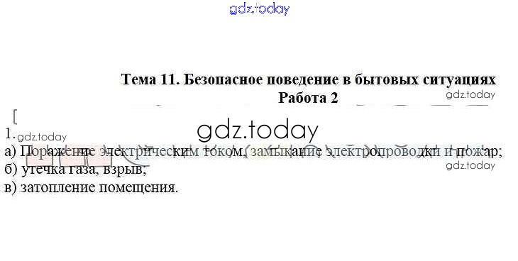 На страницах сайта gdz.today вы найдете учебный и вспомогательный материал, направленный на улучшения знаний школьной программы. ГДЗ - онлайн мир знаний Работа 2 Решение к теме 11. Безопасное поведение в бытовых ситуациях 1 Рабочей тетради по ОБЖ для 5 класса Демидов Лицей 2016