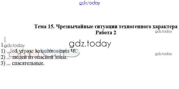 На страницах сайта gdz.today вы найдете учебный и вспомогательный материал, направленный на улучшения знаний школьной программы. ГДЗ - онлайн мир знаний Работа 2 Решение к теме 15. Чрезвычайные ситуации техногенного характера 1 Рабочей тетради по ОБЖ для 5 класса Демидов Лицей 2016