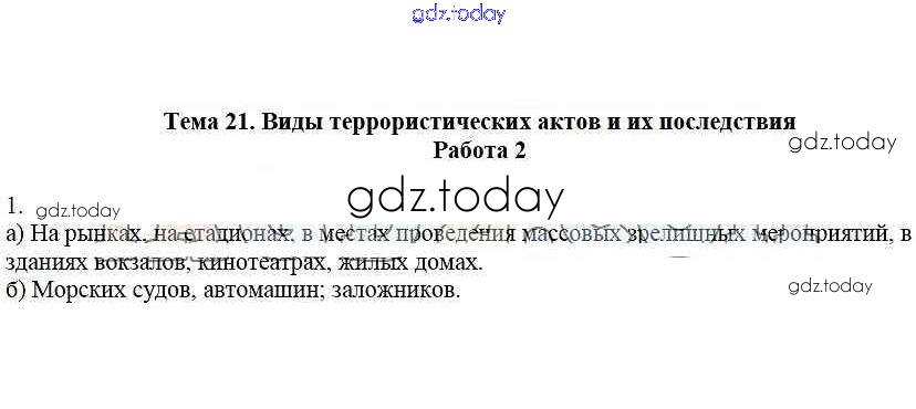 Ответы к Работа 2 Решение к теме 21. Виды террористических актов и их последствия 1 Рабочей тетради по ОБЖ для 5 класса Демидов Лицей 2016