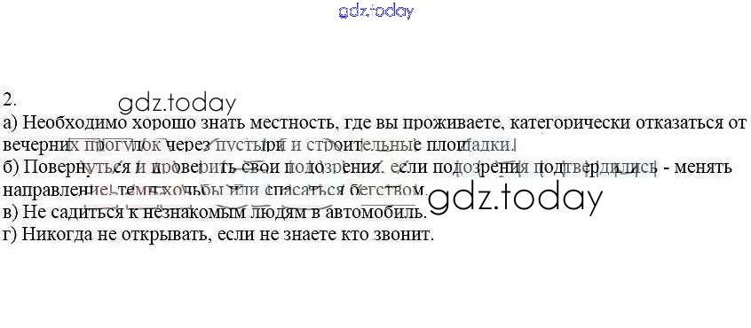 На страницах сайта gdz.today вы найдете учебный и вспомогательный материал, направленный на улучшения знаний школьной программы. ГДЗ - онлайн мир знаний Работа 2 Решение к теме 21. Виды террористических актов и их последствия 2 Рабочей тетради по ОБЖ для 5 класса Демидов Лицей 2016