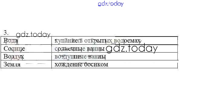 На страницах сайта gdz.today вы найдете учебный и вспомогательный материал, направленный на улучшения знаний школьной программы. ГДЗ - онлайн мир знаний Работа 1 Решение к теме 24. Двигательная активность и закаливание организма – необходимые условия укрепления здоровья 3 Рабочей тетради по ОБЖ для 5 класса Демидов Лицей 2016