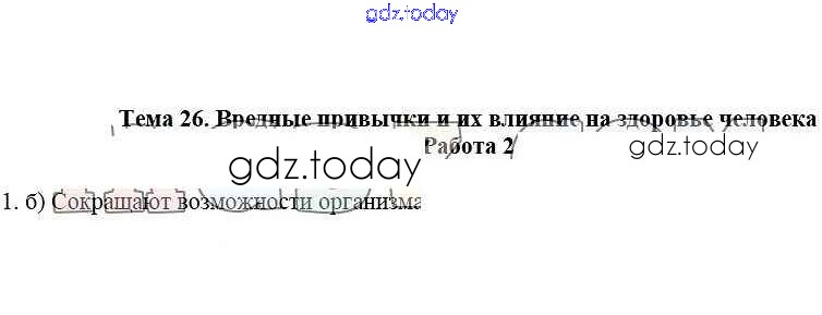 На страницах сайта gdz.today вы найдете учебный и вспомогательный материал, направленный на улучшения знаний школьной программы. ГДЗ - онлайн мир знаний Работа 2 Решение к теме 26. Вредные привычки и их влияние на здоровье человека 1 Рабочей тетради по ОБЖ для 5 класса Демидов Лицей 2016