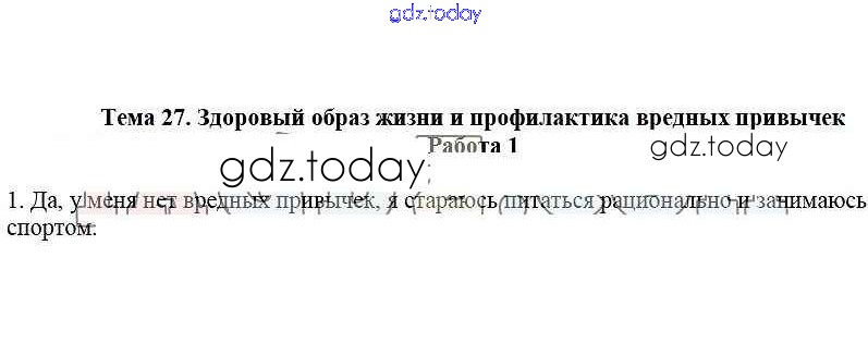 На страницах сайта gdz.today вы найдете учебный и вспомогательный материал, направленный на улучшения знаний школьной программы. ГДЗ - онлайн мир знаний Работа 1 Решение к теме 27. Здоровый образ жизни и профилактика вредных привычек 1 Рабочей тетради по ОБЖ для 5 класса Демидов Лицей 2016