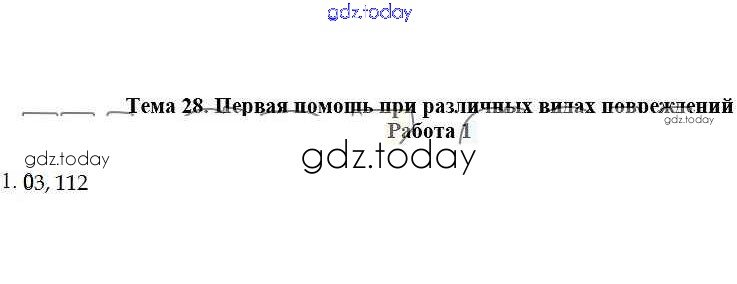 На страницах сайта gdz.today вы найдете учебный и вспомогательный материал, направленный на улучшения знаний школьной программы. ГДЗ - онлайн мир знаний Работа 1 Решение к теме 28. Первая помощь при различных видах повреждений 1 Рабочей тетради по ОБЖ для 5 класса Демидов Лицей 2016