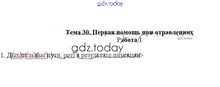 На страницах сайта gdz.today вы найдете учебный и вспомогательный материал, направленный на улучшения знаний школьной программы. ГДЗ - онлайн мир знаний Работа 1 Решение к теме 30. Первая помощь при отравлениях 1 Рабочей тетради по ОБЖ для 5 класса Демидов Лицей 2016