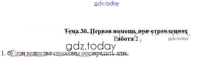 На страницах сайта gdz.today вы найдете учебный и вспомогательный материал, направленный на улучшения знаний школьной программы. ГДЗ - онлайн мир знаний Работа 2 Решение к теме 30. Первая помощь при отравлениях 1 Рабочей тетради по ОБЖ для 5 класса Демидов Лицей 2016