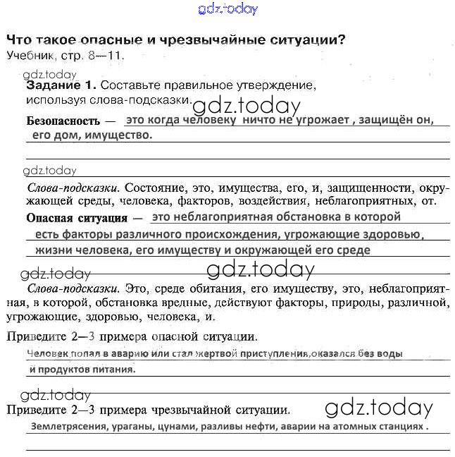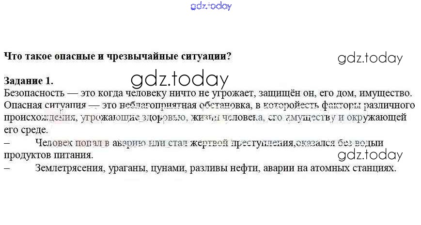 На страницах сайта gdz.today вы найдете учебный и вспомогательный материал, направленный на улучшения знаний школьной программы. ГДЗ - онлайн мир знаний Решение к §1. Что такое опасные и чрезвычайные ситуации 1 Рабочей тетради по ОБЖ для 5 класса Драновская Аст/Астрель 2014